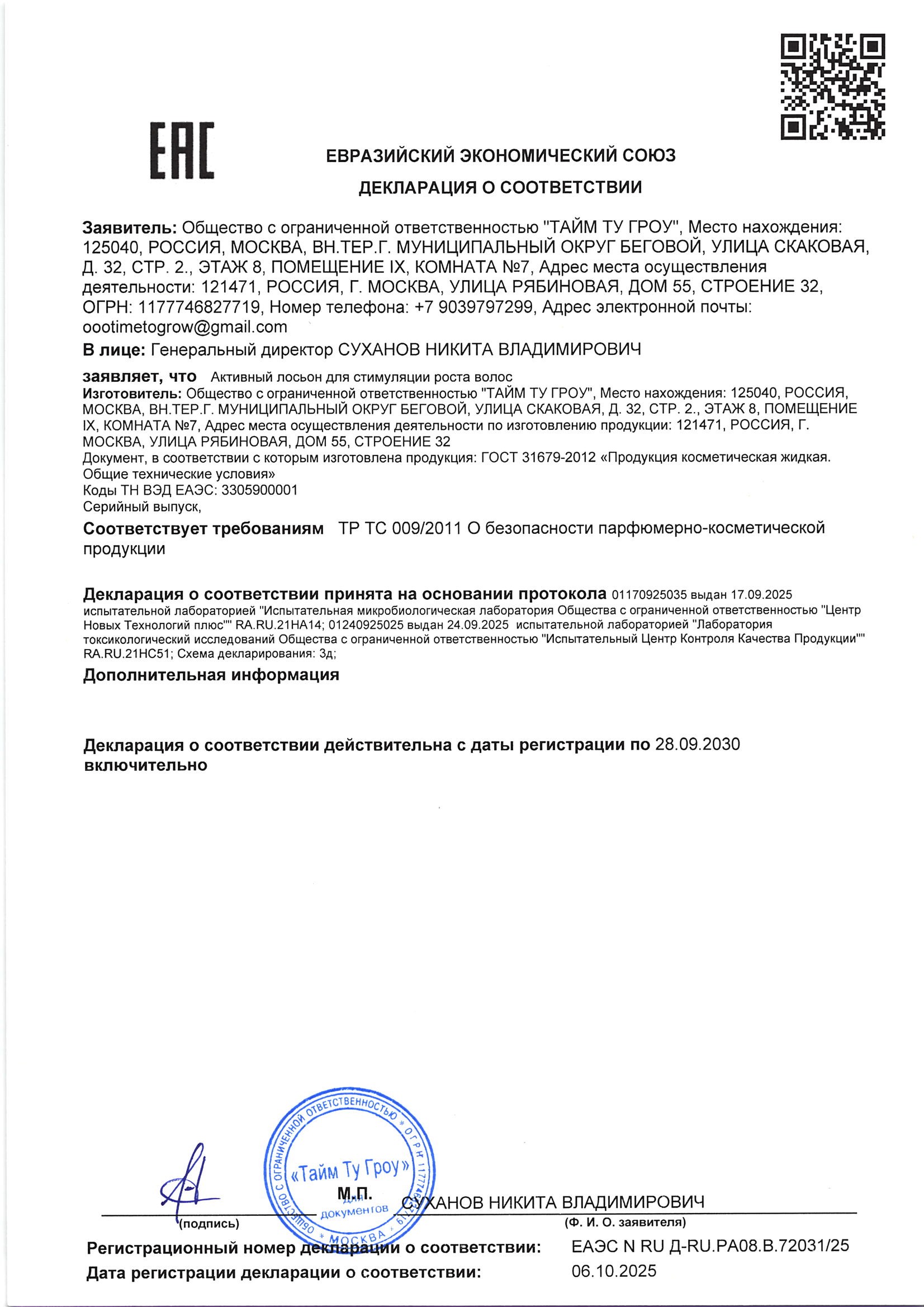 Создано в Сколково. Усиленная формула, разработанная врачами дерматологами, трихологами.