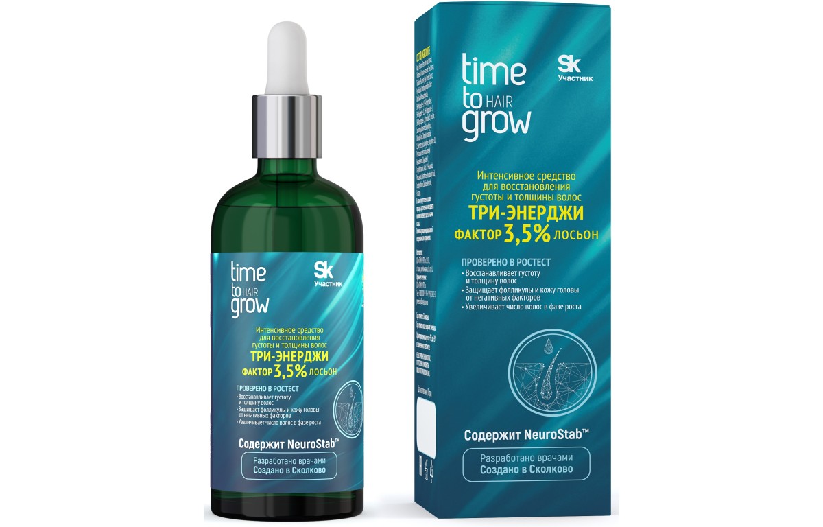 Интенсивное средство для восстановления густоты и толщины волос ТРИ-ЭНЕРДЖИ фактор 3,5% лосьон. Содержит NeuroStab™