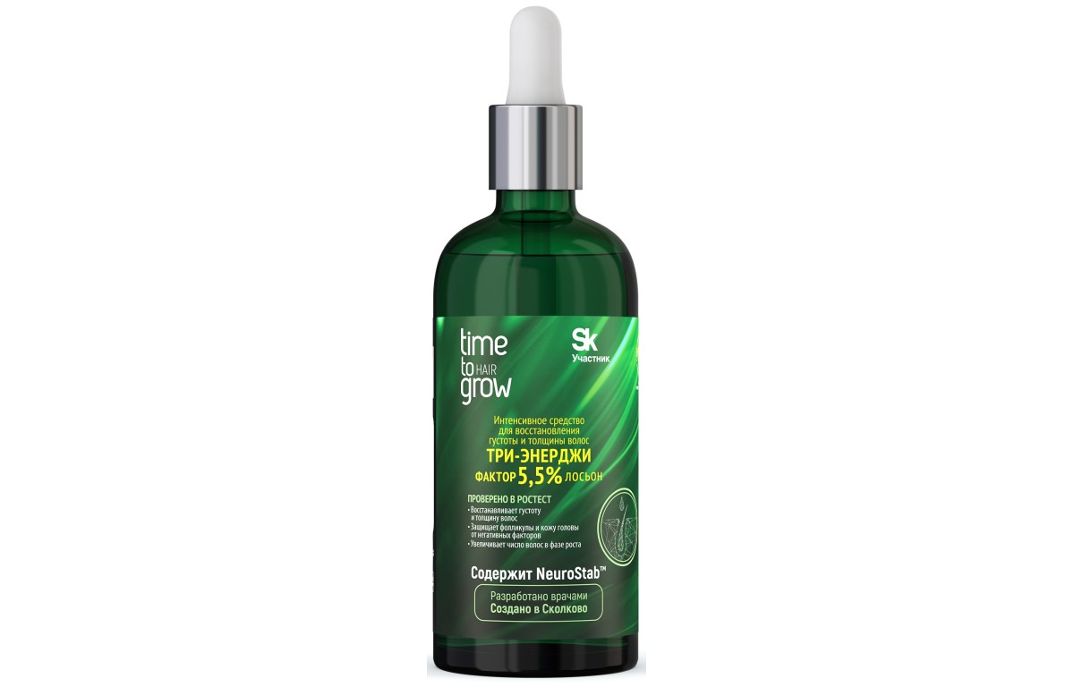 Интенсивное средство для восстановления густоты и толщины волос ТРИ-ЭНЕРДЖИ фактор 5,5% лосьон. Содержит NeuroStab™