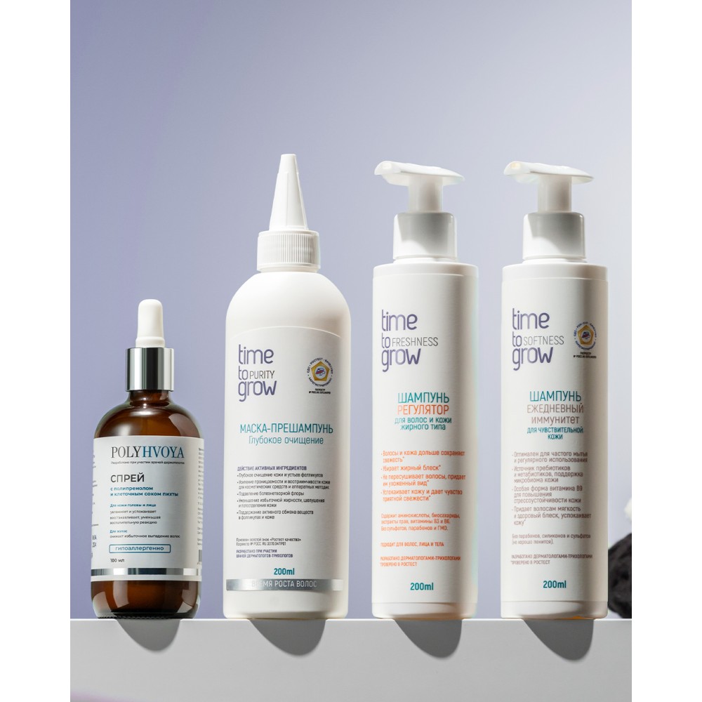 Подходит для ежедневного применения. Использовать самостоятельно или сочетать с другими шампунями бренда Time to grow.