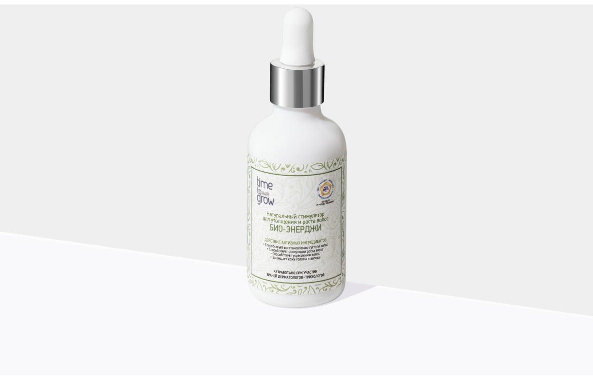 Возможен иной вариант применения по назначению специалиста. Био-энерджи часто рекомендуют для совместного использования с другими препаратами Time To Grow, например: Активный лосьон на всю поверхность скальпа вечером + Био-энерджи на край роста волос и виски утром. В этом случае расход Био-энерджи меньше, чем 35-40 капель. Удобнее всего ориентироваться на следующий фактор: обрабатываемая поверхность скальпа должна быть равномерно слегка увлажнена препаратом.